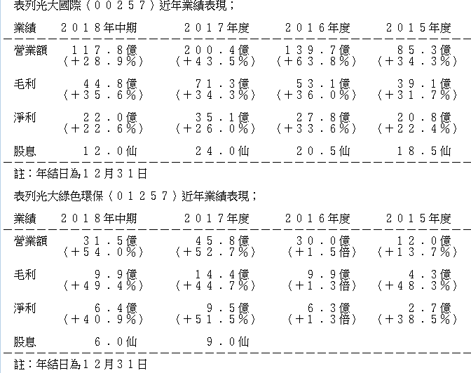 光大國際經營多種與環保有關的業務,垃圾發電業務為直接經營業務,污水處理、水務環境治理、生物質發電、環境修復等業務則通過光大水務和光大綠色環保經營。光大國際2018年上半年業績不俗,收入約118億元增長29%,除利息、稅項、折舊及攤銷前盈利(EBITDA)及股東應佔溢利分別為約44億元及約22億元,分別增長35%及23%。集團約52%的收入及約59%EBITDA來自垃圾發電業務,綠色環保業務及環保水務業務分別佔收入的28%及20%。及分別EBITDA的23%及18%。截玨2018年6月底綜合負債總額為503億元,而資產負債比率為61%,與2017年年底一致。中期股息每股0.12元。截至2018年6月底,該公司有環保項目299個,總投資約人民幣826.49億元。於2018年下半年至今,該公司再從內地政府取得多個項目,業務繼續積極發展。光大水務最近公布2018年首9個月的業績,股東應佔溢利也增長36%。