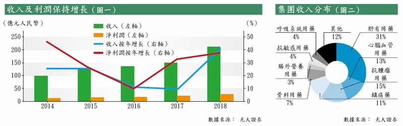 可喜的是,集團收入結構調整已初見成效,目前抗腫瘤藥、心腦血管病及鎮痛藥領域增長迅速,收入佔比已分別提升至15.3%、13.1%及10.9%,收入結構平均分散應有效對冲產品降價風險。興業證券亦預料,相比第一批產品佔去年總收入比重為33%,今年第二批潛在帶量採購名單佔公司總收入比重不到13%,料今年帶量採購對收入的影響相當有限。