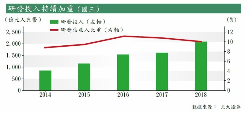 中生製藥向來注重研發,是國內研藥型藥企的第一梯隊。去年研發費用21億元,按年增長三成,佔總收入一成水平(見圖三),位居全國第一。集團目前擁有8大研發平台,接近500個在研產品,當中有40個已處於報產階段。其中抗腫瘤藥佔最大份有206個,其餘心腦血管、糖尿病及呼吸系統等約佔相若比重,與公司平衡收入結構策略相符。