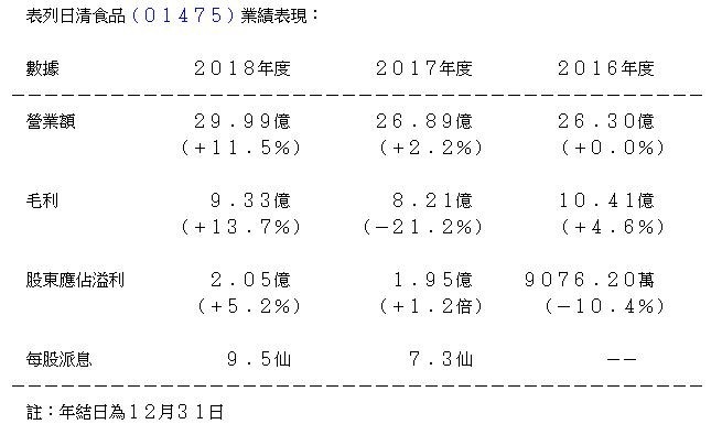 日清2018年度毛利增長13.7%至9.3億元,毛利率上升0.6個百分點至31.1%,主要是折舊開支穩定及銷售成本控制改善所致。股東應佔溢利增長5.2%至約2.1億元。