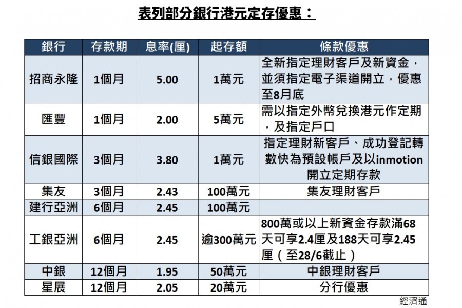 更詳盡定存息率優惠,可參閱《經濟通》網頁: