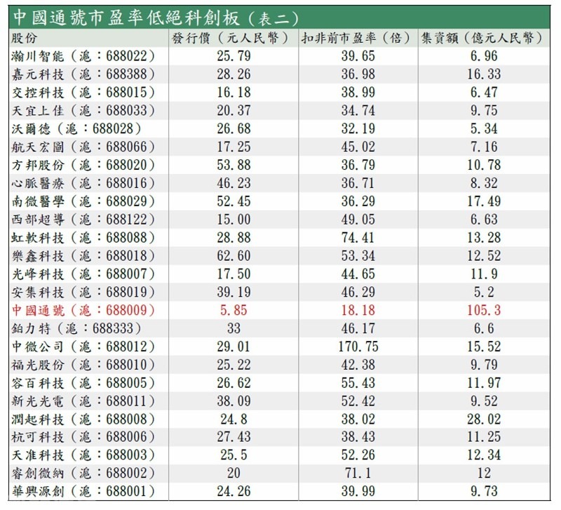 中國通號近期的另一賣點,是其在上海科創板發行A股上市。作為首批科創板上市股份,集團是當中的巨無霸,集資額逾100億元,遠多於排第二的28億元(見表二)。