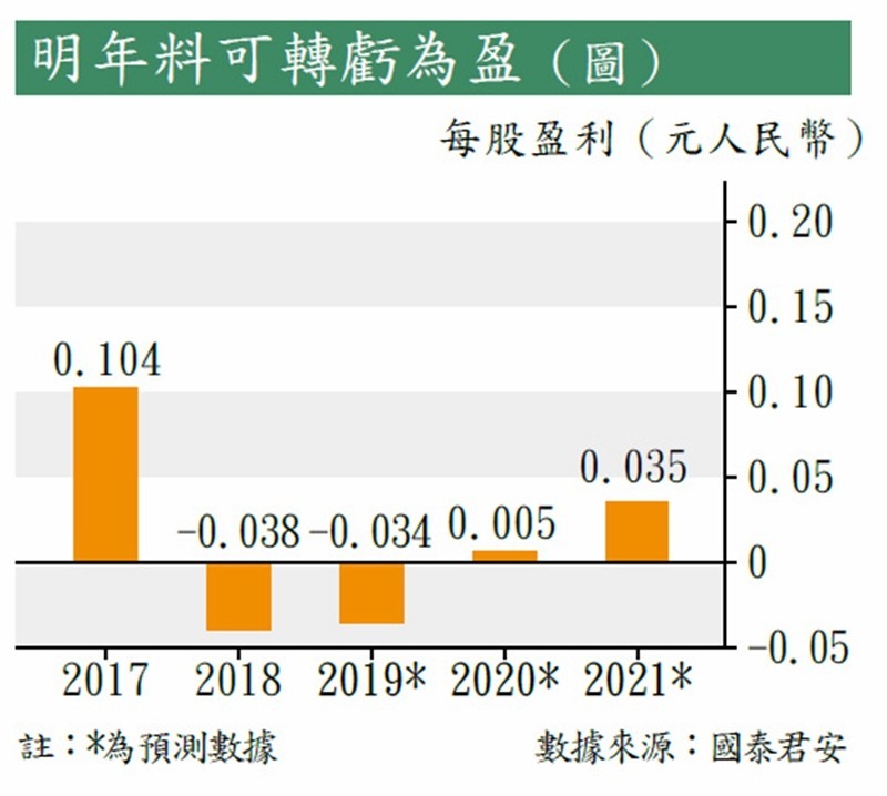 參考給予保利協鑫「中性」評級、目標價僅0.4元的國泰君安預測,集團今年每股盈利料仍會錄得虧損,但較去年輕微收窄,而明年將轉虧為盈,2021年每股盈利更按年大增6倍(見圖),在此情況下,股價表現料不會太差。