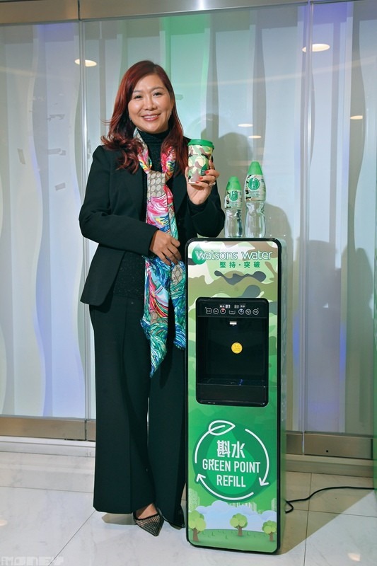 使用智能回收機,市民可透過屈臣氏滴滴賞計劃儲分換禮品,每個屈臣氏水樽可換5分,其他品牌水樽換1分,禮品包括每50分換一枝樽裝水,或每25分可換50元超市禮券(購物滿600元可用)。近日品牌與Alipay HK合作,每個膠樽可獲0.2元回贈,「這不只是一個商業行動,而是希望製造誘因,吸引市民做回收的行動,而在商業上,取得好多大數據做分析,協助業務上的發展好有幫助。」她預計,集團在未來10年,將投入2至3億元於回收工作。