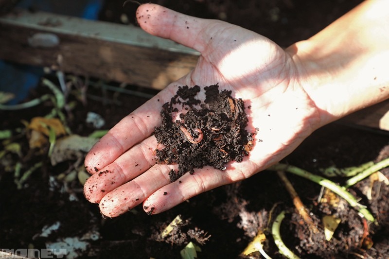 另一邊放了幾個木箱,上前定眼細看,一條條蚯蚓在咖啡渣、菜渣和泥土間穿梭蠕動,其實這都是堆肥的一種,蚯蚓會不斷進食大量廚餘,「蚯蚓每日可消化等同其體重5倍的食物。」而蚯蚓的排洩物含有豐富營養,可用作肥料,「這種方法最少3天就有肥料,實際需時視乎蚯蚓和有機物的數量。」得到的有機肥料會撒在泥土上再混合,讓養份慢慢釋放到泥土中,隔一段時間因應時節再播種。