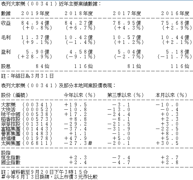 大家樂截至2019年3月底的年度業績出色,勝過大快活(00052)和翠華控股(01314)等同類股份同期純利下跌。大家樂年度收入增長0.8%至約85億元,股東應佔溢利則上升28.9%至約6億元。