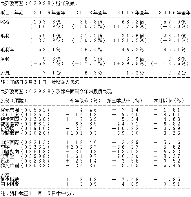 證券商招銀國際周中積極為波司登股價護航,認為波司登值得趁低吸納。招銀國際認為今年的天氣未必不利波司登的產品銷情。雖然今年中國三個主要城市在9月至11月上旬的平均溫度均較2018年為高,但冬天的天氣未必對波司登的產品不利。招銀國際引述美國國家海洋及大氣管理局的資料,指出今年冬季多數會出現「ENSO中性」或拉尼娜現象。「ENSO中性」現象即沒有厄爾尼諾或拉尼娜現象,而拉尼娜現象即赤道太平洋中部、東部表面海水異常寒冷。因此,今年冬季的天氣可能仍然較冷。美國東岸近日受寒流侵襲,仿如隆冬降臨,而泰國的氣象報告預期12月至明年1月會受到寒流侵襲,曼谷的氣溫有機會跌到15至17度。中國今年冬季天氣驟冷的機會不低。