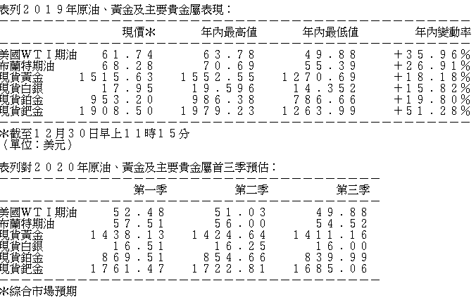 2019年隨著中美貿易戰不斷升溫,各地經濟開始出現增長放慢跡象,聯儲局放寬貨幣政策,年內三度減息,美元自年中開始回吐年初的升幅。2019踏入尾聲之際,美元幾乎回到上年尾的水平,故市場對2020年的美元走勢採取更謹慎克制的看法。商品市場方面,持續的國際貿易緊張局勢和政治上的高度不確定性,更多投資者湧向貴金屬市場避險,加上美股屢創高位,相信2020年黃金、白銀價格將會持續有支撐,並進一步突破高位。